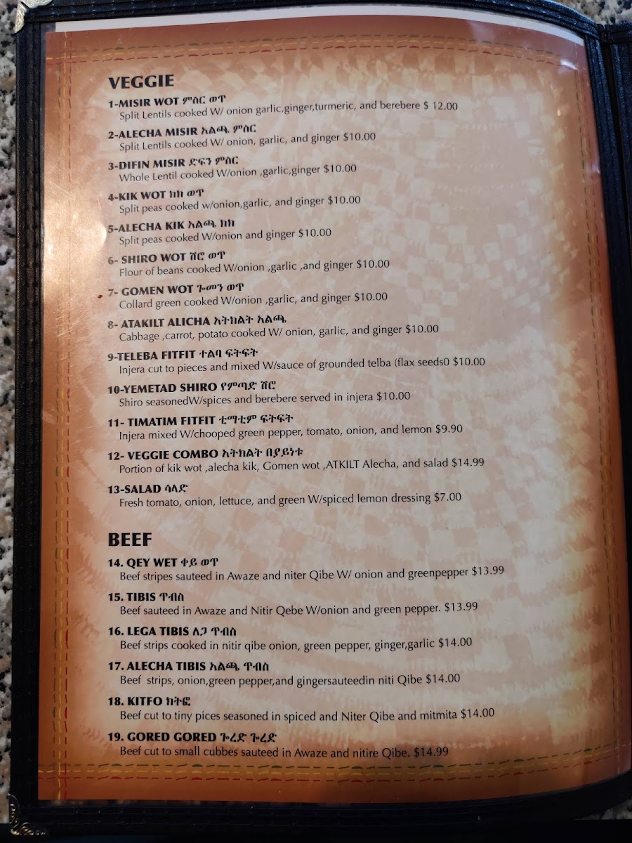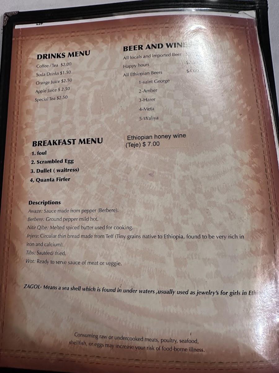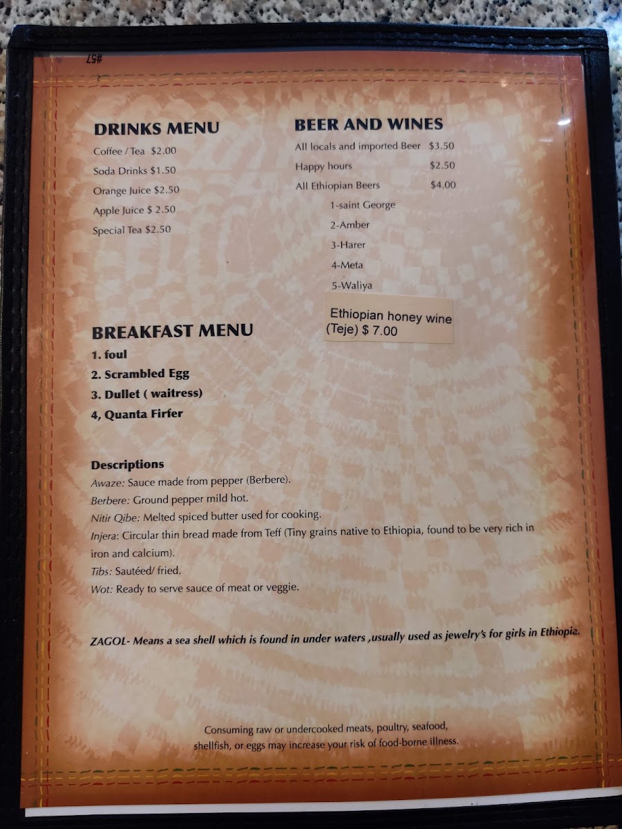 Welcome to Zagol Ethiopian Restaurant, a hidden gem located at 2722 E Cherry St, Seattle. Here, the menu is a vibrant showcase of Ethiopian cuisine, inviting both newcomers and seasoned diners to explore its depths. Highlights include the Veggie Combo, featuring a delightful plethora of fresh lentils, tender beets, and succulent cabbage, all served with the traditional injera bread. Customers rave about the meticulous preparation and diverse flavors, like in the Zagol Combo, which beautifully balances vegetarian offerings with juicy meats.